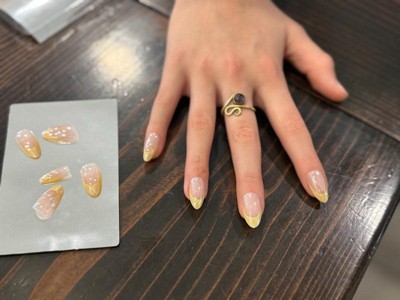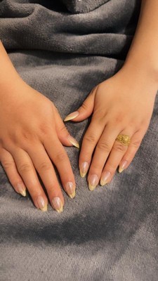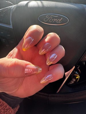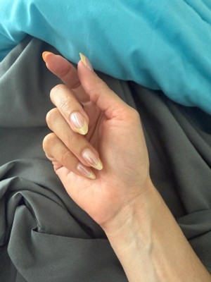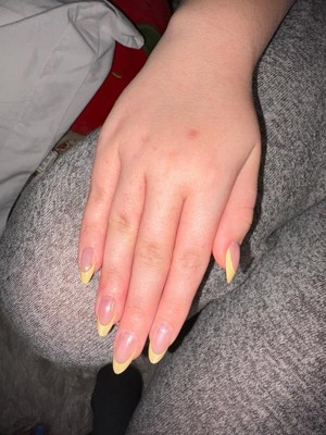 [This review was collected as part of a promotion.] I’m genuinely impressed by these nails. Normally I can only get press ons to last me 2 days but these stayed on for 8 days until I decided to remove them !! There was some small chipping of the yellow color on the tips but that is normal with any press ons or polish. The shape is really pretty and they fit the curve of my nail beds so well. Removal was somewhat difficult, the glue is strong ! But at least you know your nails are going to last you and not accidentally pop off so I can’t complain. They are slightly thick but they are strong and sturdy and look and feel great.