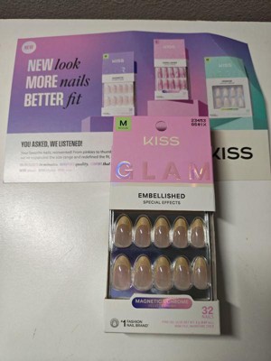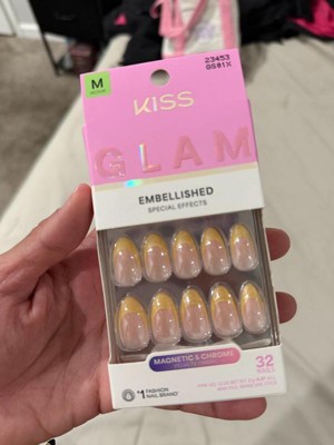 KISS Nails GLAM Embellished Press-On Fake Nails - Medium Almond - Always Glowing - 35ct