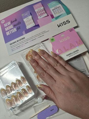 [This review was collected as part of a promotion.] These KISS GLAM nails are very cute. Not sure I’d get this style again, but I would definitely try another color/pattern. I had to file the tip of each nail before applying. It would have been nice if they arrived shaped properly! Other than that, they applied easily with the glue and lasted almost two weeks!