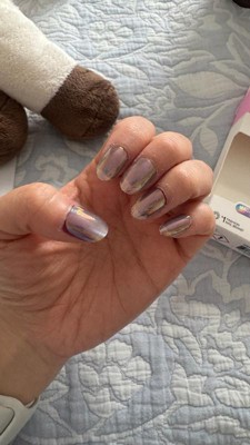 [This review was collected as part of a promotion.] These press on nails have such a pretty design! I love the color, they look like moonstones! They are a little sheer in some angles. You can see that on my thumb and pinky in the photos.