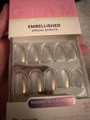 [This review was collected as part of a promotion.] I tried the KISS Glam Embellished Press-On Nails (Short) and they’re so pretty in person. The magnetic chrome finish gives a subtle, glossy shine that looks salon-done. They were easy to apply, comfortable to wear, and stayed put without feeling bulky. Perfect for a quick, polished manicure at home.