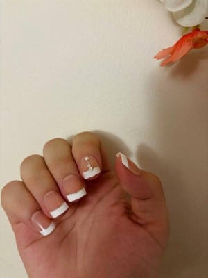 [This review was collected as part of a promotion.] Very disappointed with this set of nails. The French bail started peeling off within a week. :( now i have to take the nails off at a weeks a time. And the middle two finger nails French tip shrunk down after a week this time. And I have had this type of nail 4 to 5 times in the past year. This last batch was very poor quality. Very disappointed since I have been bragging about them to everyone I meet 😞
