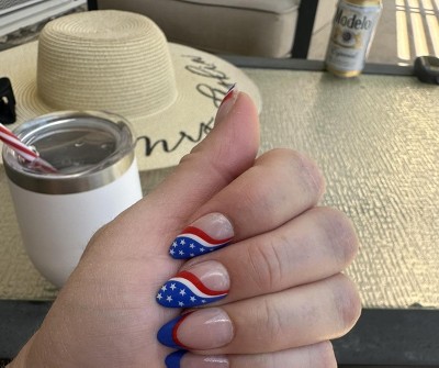 Really cute design perfect for the Fourth of July. Super shiny. I used Glamnetic glue but still had some pop off easily