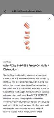 The NO GLUE Mani is being taken to the next level! Create a MAJOR moment in minutes with colorFX by imPRESS fake nails. This is color reimagined, with chrome-like effects that cannot be achieved from any ordinary nail polish. Discover must-have colors & finishes, including on-trend metallic & pearlescent nails with a high gloss finish. Our exclusive press on color technology, Explore all our colorFX styles & finishes, including on-trend metallic & pearlescent nails with a high gloss finish. Our exclusive press on color technology, with New & Improved Adhesive, lasts up to 10 days of flawless wear. Just peel, press & go!