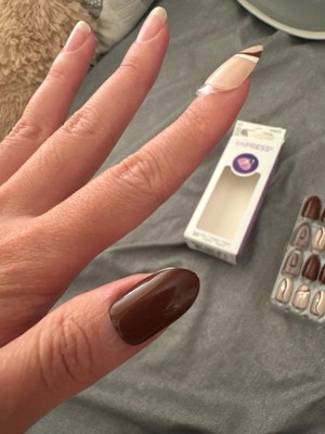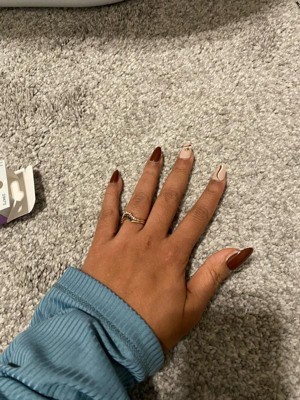 [This review was collected as part of a promotion.] Love, love, love impress press one and these are so perfect for fall!!! I was in a hurry and forgot to wash my hands before applying. I had just moisturized with a nail/hand oil so the press ons didn’t stick properly 🤦🏽♀️ but that was completely my bad. I have never had issues with the sizing or adhesive with these press ons honestly a great budget friendly option for an event or even if you want to feel more put together. I also love that they come in different lengths and styles!