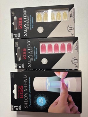 Our game changing at-home LED Gel Nail Kit offers numerous styles, lengths, & shapes with a salon sculpted look. Revolutionary soft gel adhesive cures quickly under our ergonomically designed LED lamp for a flexible, comfortable fit. Get a salon cured finish with our next level ready-to-wear gel extensions that stay flawless for up to 14 days. Precision nozzle allows for easier control and gel application. 2 easy, damage-free removal options: soak off, or KISS Glue OFF® remover.