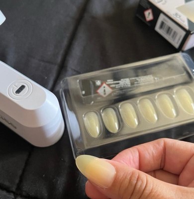 [This review was collected as part of a promotion.] I’ve done my own nails doing gel x before and this was a super fun quick way to get nails done in half the time! The nails come in an easy packet and the lamp is separate as well. I will say it was quicker because you only have to apply the nails and not have to worry about painting each individual nails and curing etc. if you’re in a hurry these are good but the color options they gave could be better.