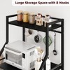 - Large Storage Capacity: The microwave stand has large counter tops, 1 top shelf, and 2 metal wire baskets with 8 hooks, providing you with plenty of space to place the microwave oven, bread machine, juicers, toaster, pots, and pans, spices, fruits, vegetable and other supplies