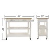 Kitchen Cart with Drawers, Rubber Wood Top and Two Lockable Wheels