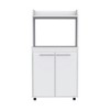 - Multi-Functional Design for Space-Saving Kitchen Organization Combining a microwave shelf, cabinet storage, and a mobile base, this cart maximizes kitchen efficiency. Its compact footprint fits seamlessly into apartments, dorm rooms, or compact kitchens, offering both style and practicality.