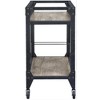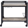- This serving cart combines rustic charm with industrial flair, featuring a warm Rustic Oak and Charcoal finish.