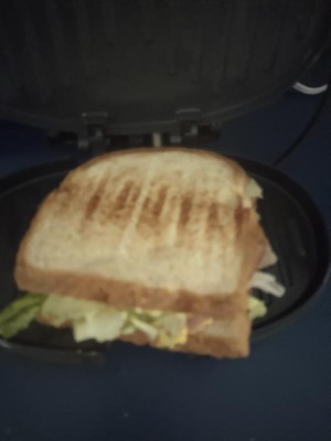 [This review was collected as part of a promotion.] I would first like to say that the grill looks like a cute and small appliance easy to take anywhere. I think a few good features are that the grill is easy to store, and has a place to hold the wire on the bottom. I feel the sandwich needs to be small and not too tall to cook evenly. The sandwich didn’t cook evenly on the outside of the bread so it can’t be really thick. Another aspect I think may need to be fixed a little is the wire is a bit short in my opinion so you can’t plug it into an outlet too far away. I decided to make a grilled cheeseburger sandwich. The grill is not that big so I would say to make sure you don’t have a big sandwich to put on the grill. The top of the grill needs to be pushed down enough to enable the grill to cook both sides of the sandwich. I recommend following the directions with putting a spray of oil or butter on both sides of the grill before preheating the grill. By doing that it will make sure the bread doesn’t stick to the grill. Also, the little tray underneath the grill is a great tool to get all the fat drippings or oil discards and easy cleanup. One aspect I don’t particularly like is the size of the grill, so I would suggest a bit bigger size so you can put a bigger sandwich on the grill instead of being limited to about half an inch size of sandwich, bread, or meat too. With all the above said, I would recommend this product to someone who wants to make a quick grilled cheese sandwich for sure. I think making grilled chicken or a burger would work well with this appliance as well.