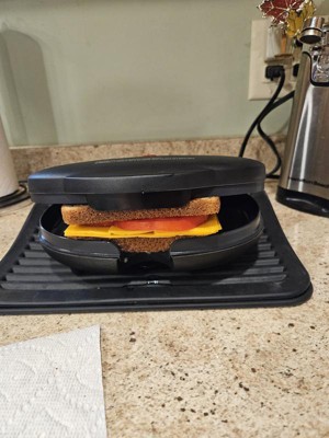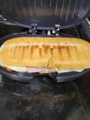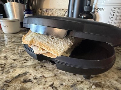 [This review was collected as part of a promotion.] We were excited to try this sandwich/grill maker. After using it for the fiorst we were greatly disappointed. Mu husband wanted a panini sandwich so he made one. We heated the grill as the directions dated. The grill heated up quickly. He put his sandwich on the grill and tried to put the top down. The hinges don't float so the top really did not stay on the sandwich. The tilt of the grill caused the sandwich to continuely slide forward. He had to turn the sandwich several times in order for it to grill on both sides. It took 11 minutes for the sandwich to toast and the cheese to melt. The sandwich consisted of 2 slices of whole bread, slice of ham, turkey, Swiss cheese, onion, tomato with spicy mayo.
