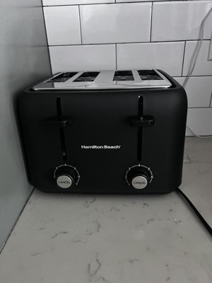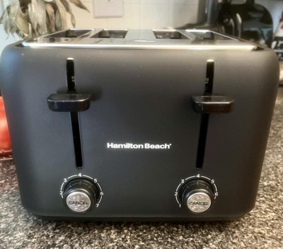 [This review was collected as part of a promotion.] This Hamilton 4 slice toaster works great. It's so simple. It's been easy to use. It has wide slots, prefect for my bagels. It has 7 sector individual controls. I like my toast a little crispy. Easy to use cancel buttoms. Comes with 2 individual crumb trays. Very easy to clean. The matte black color is nice. I like this toaster.
