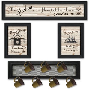 "Kitchen Collection VI" 4-Piece Vignette with 7-Peg Mug Rack by Millwork Engineering, Black Frame