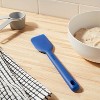 A: Hello Donelle - Thanks for asking about this Flexible Spatula from Room Essentials™. This spatula's overall dimensions are 10.71 Inches (L), 2.2 Inches (W). Thanks for stopping by! - Sokim