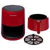 Good things come in small packages, and you will love all that this compact 2-liter capacity digital air fryer has to offer. Air frying uses a fraction of the added oils that deep frying uses and delivers fast, crispy, and evenly cooked food to your table. You'll love the touchscreen digital control panel—which features ten presets, as well as manual controls, for time (up to 60 minutes) and temperature (175º F to 400º F)—so you can create your own custom recipes. Think of air fried steaks, salmon, veggies, chips and even cakes. It also has a ten minute to 3-hour delay function, so the food is ready when you are. It's the perfect size for small households or as an auxiliary oven. At only 12" tall, it easily fits on your counter or in your cupboard. As a bonus, Kitchen HQ includes nine chef created recipes included to whet your appetite.