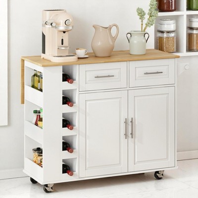Kitchen Island with Drop Leaf, Rolling Kitchen Cart with Removable Side Shelf, Hidden Tilt Trash Cabinet, Drawers and Adjustable Storage