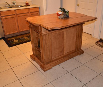 The island looked very nice. The color matches my oak cabinets perfectly. The ample cabinet and counter space serves the purpose. However, two screws are missing and the two holes of extension support piece are not threaded.