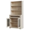 - Spacious Pantry Cabinet Offering Generous Storage:This kitchen pantry includes a large tabletop, a roomy storage drawer, three open shelves, and two spacious cabinets behind glass doors. It provides abundant organized space for your kitchen essentials, ingredients, cookware, and dining utensils, helping you maintain a tidy and clutter-free environment.