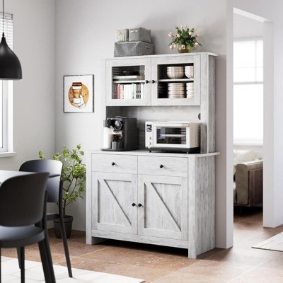 Kitchen Pantry Cabinet with Microwave Stand, Freestanding Hutch Cabinet with Buffet Cupboard, Tall Storage Cabinets for Kitchen, Dining Room,White