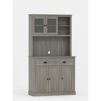 Kitchen Pantry Storage Cabinet with Barn Doors, Drawer and 2 Adjustable Shelves, Freestanding Tall Hutch with Microwave Stand for Dining Room