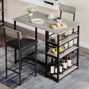 Kitchen Table Set, Dining Table and 2 Upholstered Bar Chairs with 3 Large Storage Shelf, Wooden Table Set for Small Spaces, Apartment, Home