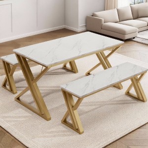 Kitchen Table Set , with X Metal Frame and Benches