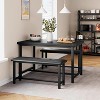 - Easy to Assemble:This dining table set includes all the necessary assembly hardware and tools, along with clear illustrated instructions for easy setup. The table and bench set can be effortlessly assembled in under 40 minutes. The table measures 44.48” (L) x 27.58” (W) x 29.58” (H), while each bench is sized at 38.58” (L) x 10.68” (W) x 18.58” (H).