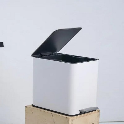Kitchen Trash Can, with Lid, Stainless Steel, with Removable Inner Bin and Foot Pedal, Slim Metal Trash Can, Suitable for Bathrooms, Kitchens, White