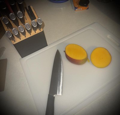 The KitchenAid 2-Tone 14-Piece Block Set is everything I needed and more! It comes with all the essential knives, expertly crafted from high-quality Japanese steel. The built-in sharpener is a fantastic feature, keeping the blades razor-sharp and ready to use. The textured, no-slip grip handles feel secure and comfortable, even during long prep sessions. The two-tone design adds a stylish touch to my kitchen. This set is the perfect combination of functionality and durability—highly recommend it to anyone looking for a reliable knife set!