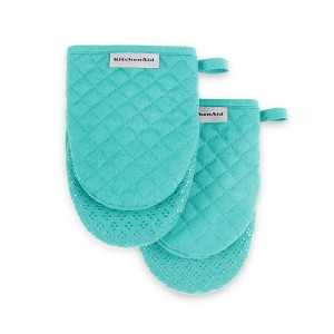 - SET OF TWO: Protect both hands while handling hot pots and pans. Set includes two (2) KitchenAid Asteroid Mini Mitts in aqua, 5.5" W x 8" L.