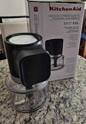 KitchenAid 3.5 cups Go Cordless Top Down Food Chopper Matte Black battery included: 1 Speed, Stainless Steel Blade, 3.5 Cup Capacity
