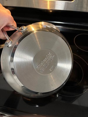 KitchenAid 3-Ply Base Stainless Steel Induction Saucepan with Lid Silver: 3 Quart Stainless Cookware, Dishwasher Wash