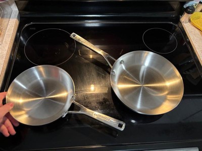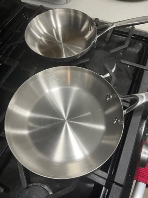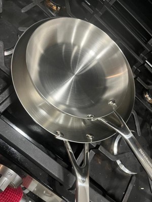 [This review was collected as part of a promotion.] Durability The pans feature a 3-ply base construction with stainless steel on the outside and an aluminum core for added strength and resistance to warping. This design ensures that the pans maintain their shape over time, even with frequent use. Users consistently praise the solid build quality, noting that it feels robust and long-lasting. However, care should be taken to avoid exposing the pans to rapid temperature changes, which could compromise their integrity. Heat Distribution One of the standout features of these pans is their ability to distribute heat evenly across the cooking surface. The aluminum core plays a key role in ensuring there are no hot spots, making it easier to achieve consistent cooking results. This feature is particularly beneficial for frying, sautéing, and searing, where precise temperature control is crucial. Cleaning These pans are dishwasher safe, which simplifies cleaning significantly. For those who prefer handwashing, the smooth stainless steel surface is easy to clean with warm water, mild soap, and a non-abrasive sponge. Food residue releases fairly easily, although using the correct heat and oil combination during cooking can help prevent sticking. Versatility The set includes two pans (8-inch and 9.5-inch), which are suitable for various cooking tasks, from frying eggs to searing meats. They are oven-safe up to 500°F, allowing seamless transitions from stovetop to oven for recipes requiring finishing or broiling. Additionally, their compatibility with induction, gas, electric, and ceramic cooktops adds to their versatility in any kitchen setup. Design The brushed stainless steel finish gives these pans a sleek, modern appearance that complements any kitchen aesthetic. The ergonomic handles are heat-resistant and comfortable to grip, enhancing safety and ease of use. However, the lack of included lids may be a drawback for those who frequently cook dishes requiring covered cooking.