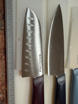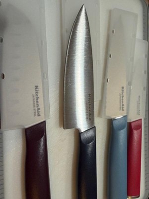 I did not know that KitchenAid made Knives. These were awesome to use in the kitchen. Sharp and they cut with decent precision. I liked that they come with caps for the knife edge and a sleeve to store them away after use. I highly recommend this set. Great addition to the kitchen.