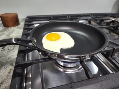 [This review was collected as part of a promotion.] I always say that to find out if a frying pan is good,just cook eggs and the KitchenAid 5ply Stainless Steel Nonstick is good.Even heating,non stick ad light weight.The omelet came out perfect and the clean up was easy,I use this pan every day.It also make a mean grilled cheese sandwich.