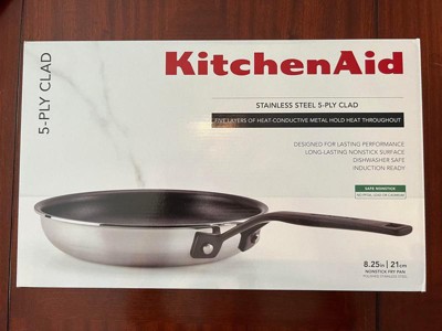 KitchenAid 5-Ply Clad Stainless Steel 8.25" Nonstick Frying Pan: Induction Safe, Dishwasher & Oven Safe, Riveted Handle