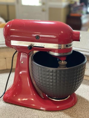 [This review was collected as part of a promotion.] I have the matte black KitchenAid mixer so this matte black studded ceramic bowl looks absolutely awesome with my mixer. It fits perfectly and snugly so that it doesn’t move. I like having an extra bowl so that I don’t have to keep washing the original bowl when I’m cooking. It’s not too heavy but I do wish the bowl had a handle. That is the only downside of this ceramic bowl. But I love the look of this ceramic bowl with my mixer when it is always on my counter. Quality product as always from KitchenAid!!