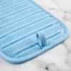 Use the KitchenAid Albany Pot Holders 2-Pack in Aqua Sky to protect your hands from the heat when handling hot pots, pans, and dishes. These matching pot holders each measure 7 inches wide by 10 inches long and feature a slide pocket for your hand for easy on-and-off use. The heavy-duty, 100% cotton fabric offers comfort, flexibility, and insulation. Printed silicone grips are heat resistant and ensure a more secure grip. This set is machine washable for easy care.