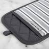 Use the KitchenAid Albany Pot Holders 2-Pack in Aqua Sky to protect your hands from the heat when handling hot pots, pans, and dishes. These matching pot holders each measure 7 inches wide by 10 inches long and feature a slide pocket for your hand for easy on-and-off use. The heavy-duty, 100% cotton fabric offers comfort, flexibility, and insulation. Printed silicone grips are heat resistant and ensure a more secure grip. This set is machine washable for easy care.