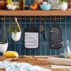 Use the KitchenAid Albany Pot Holders 2-Pack in Aqua Sky to protect your hands from the heat when handling hot pots, pans, and dishes. These matching pot holders each measure 7 inches wide by 10 inches long and feature a slide pocket for your hand for easy on-and-off use. The heavy-duty, 100% cotton fabric offers comfort, flexibility, and insulation. Printed silicone grips are heat resistant and ensure a more secure grip. This set is machine washable for easy care.
