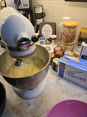 - 4.5 Quart Stainless Steel Bowl to mix up to 8 dozen cookies* in a single batch. Dishwasher safe. *Using the flat beater; 28g dough each