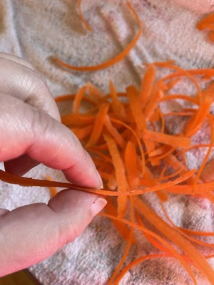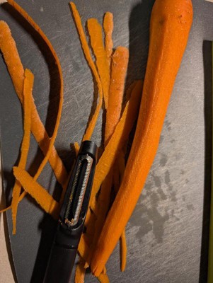 This is a VERY sharp vegetable peeler! I do think it takes kind of thick slices, and it leaves a lined texture if that is something you would care about. Hopefully it’s sharp because it made it super slick to use.