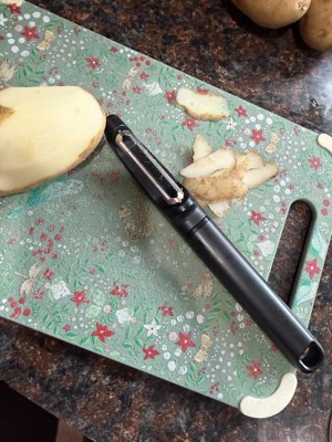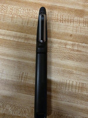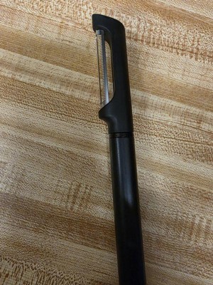 This peeler is very sharp, easy to hold especially for extended use, and fits into a drawer easily. Peels smoothly and precisely. The only downside to the peeler is I was more at tisk of cutting myself when trying to put the cover back on.