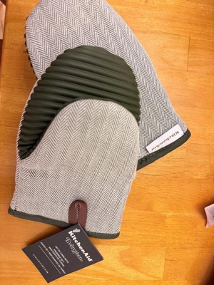 KITCHENAID� Evergreen Design Series Herringbone Ribbed Soft Silicone Mini Oven Mitts 2-Pack, Heat Resistant, Waterproof, Deep Forest Green, 5.5"x9"