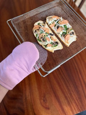 [This review was collected as part of a promotion.] I love these oven mitts from KitchenAid! They are so cute and come in this beautiful pale pink color. I love that there is a gripping material to make handling hot items simple. The heat resistant technology is incredible—I never feel the warmth from the hot product I’m handling. These are the perfect mitts for everyday cooking use.
