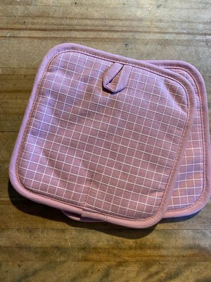 [This review was collected as part of a promotion.] This duo of KitchenAid potholders has revolutionized my kitchen game. I love everything about these versatile, well-made potholders. The dusky rose color motif goes with any kitchen color scheme. The rubberized grid surface really grips securely, and the extra thick padding protects my hands from heat. I love the hanging loops and magnets so I can keep them close at hand. They are even machine washable. These are the nicest potholders I’ve ever owned!