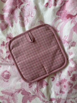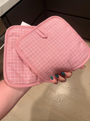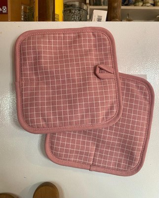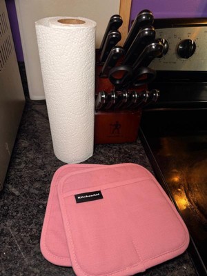 [This review was collected as part of a promotion.] This duo of KitchenAid potholders has revolutionized my kitchen game. I love everything about these versatile, well-made potholders. The dusky rose color motif goes with any kitchen color scheme. The rubberized grid surface really grips securely, and the extra thick padding protects my hands from heat. I love the hanging loops and magnets so I can keep them close at hand. They are even machine washable. These are the nicest potholders I’ve ever owned!