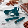 FIVE-PIECE SET: Includes 1 Tablespoon (15mL), 1/2 Tablespoon (7.4mL), 1 teaspoon (5mL), 1/2 teaspoon (2.5mL) and 1/4 teaspoon (1.25mL) ESSENTIAL TOOLS: measure both wet and dry ingredients with accuracy and ease EASY TO READ: measurements are cleary marked RING: keeps spoons together for easy storage DISHWASHER SAFE: for easy cleanup